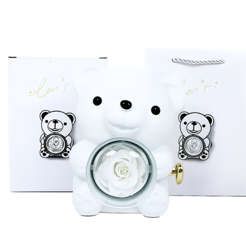 Oso rotatorio + rosa eterna + anillo de corazon