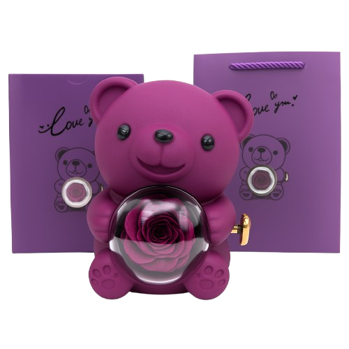 Oso con Rosa Eterna y Anillo de Promesa